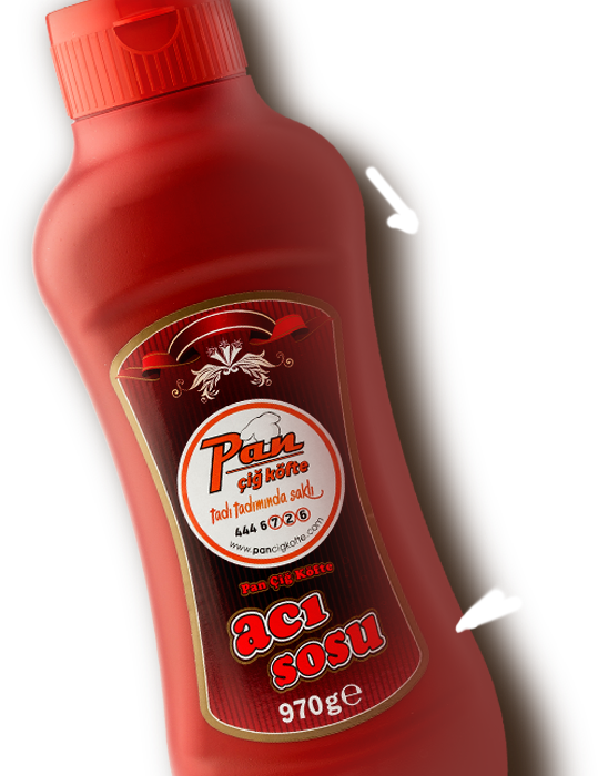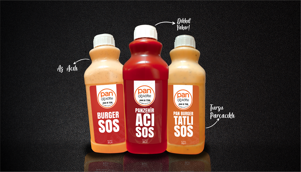 Tadına doyulmayan eşsiz soslar Pan Çiğköfte'de Lezzeti dorularda yaşamak isteyenlere hafif acılı burger sos Bazıları bol bol sever, bol acılı dürümlerin vazgeçilmezi Pan Zehir sos Modern lezzetleri geleneksel lezzetlerle harmanlandı. Turşu parçacıklı sos